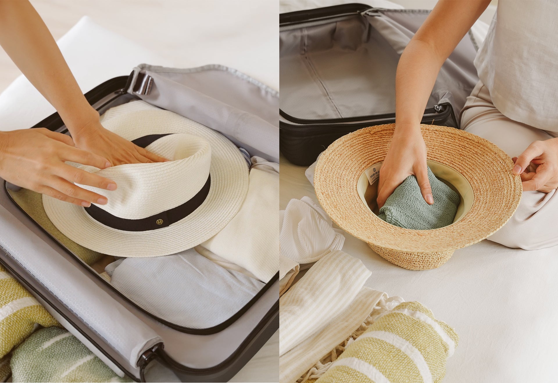 Packen Sie Ihren Sonnenhut in den Koffer.