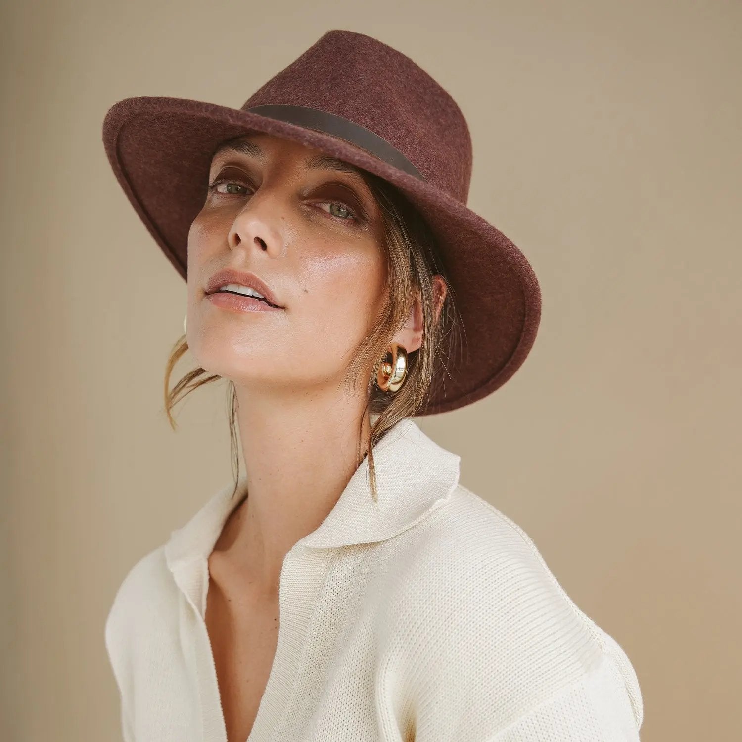 Wenn das Abenteuer ruft, ist der Wilde Fedora Ihr unverzichtbares Accessoire. Es ist aus 100 % Wollfilz in erdigen Mischtönen gefertigt und verfügt über einen Besatz aus echtem Leder, der für Wärme und Struktur sorgt – perfekt für Ihren nächsten Ausflug ins Freie.